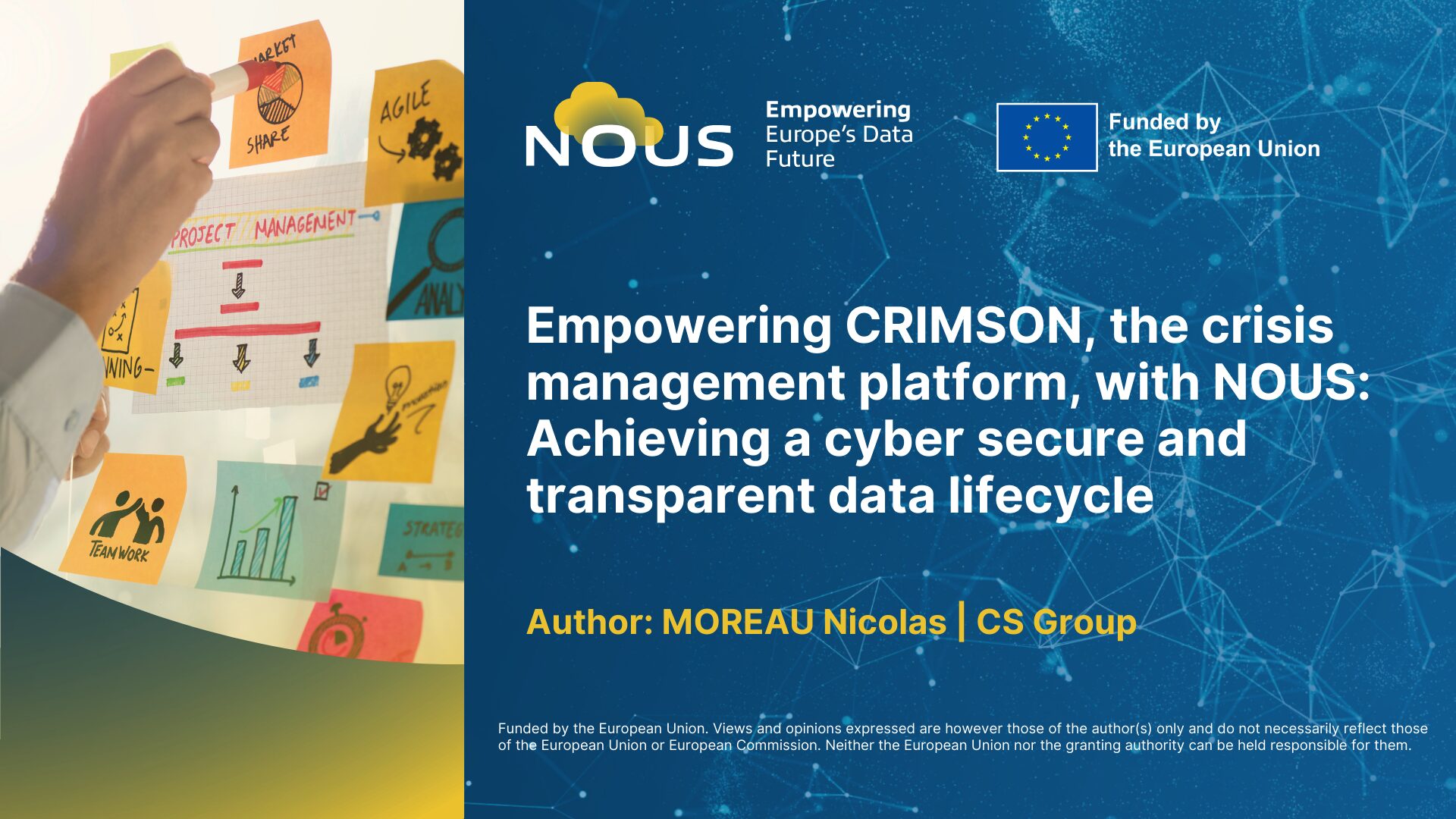 During major incidents, responders need to move faster than the crisis itself—without losing control of who can access what data, when, and why. The Use Case 3 (UC3) in the NOUS project tackles exactly this challenge: enhancing CRIMSON, a cloud‑based crisis‑management platform, by porting it to the NOUS environment and harnessing its Data Life‑Cycle Management (DLCM) and Cyber Secure Architecture capabilities. The goal is simple to state and hard to achieve: fine‑grained monitoring and administration of data accessibility and traceability—fast, robust, secure, and transparent—across multiple organizations.