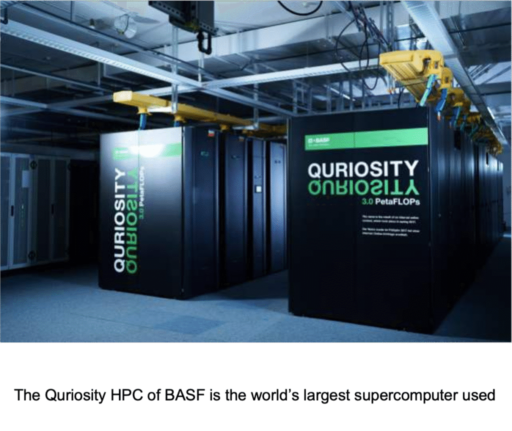 Materials research tells a similar story. SES AI teamed with NVIDIA to screen ~121 million molecules for better electrolytes using the GPU-powered ALCHEMI platform, compressing decades of battery research into months.5 BASF runs “Quriosity,” the world’s largest chemical research supercomputer, to model reactions and narrow hundreds of millions of configurations down to the top ~200 candidates.6 And Shell’s HPC models span from nanoscale electrochemistry to full battery packs, helping develop patented cooling fluids now moving toward commercialization.7,8